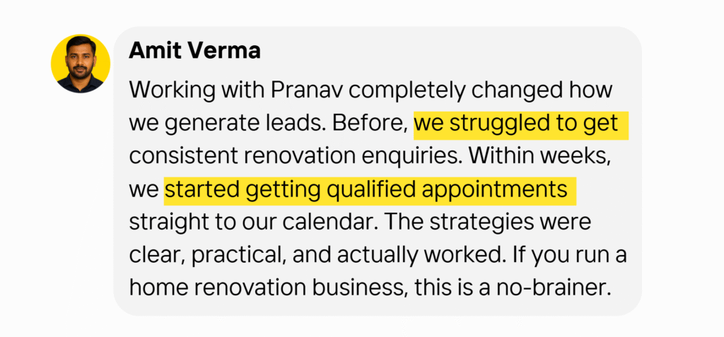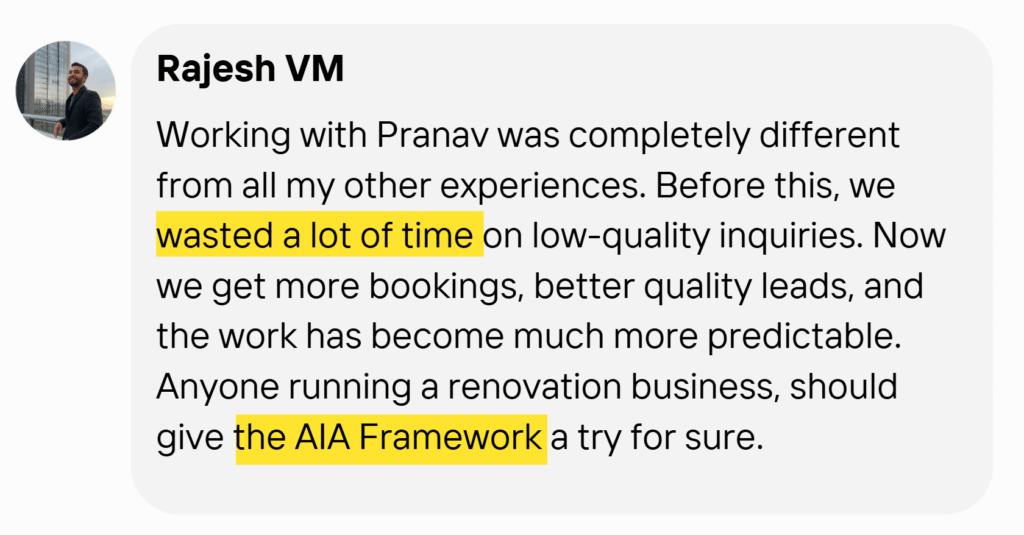 This is not for beginners or business owners who aren’t willing to invest time, effort, or budget into growth. This is strictly for serious renovation and interior business owners who want predictable results.
