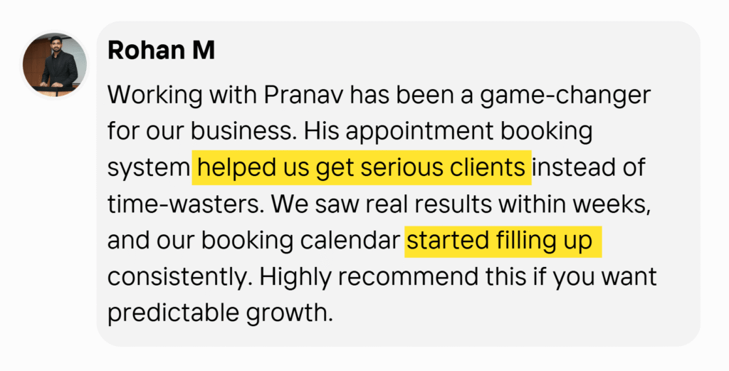 This is a LIVE 1:1 business consultation call where I analyze your current lead flow, closing process, and growth potential. If I see that my AIA framework can realistically help your business, I’ll explain the next steps. If not, I’ll tell you directly.